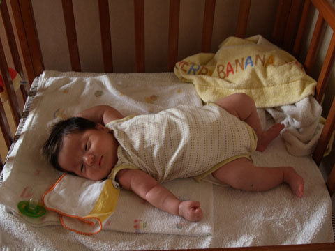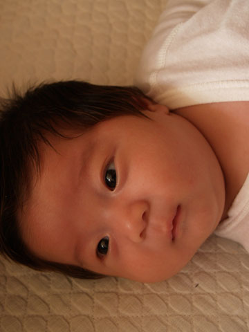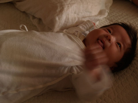 9月8日現在、あやすと喜ぶ。目で追いかける。