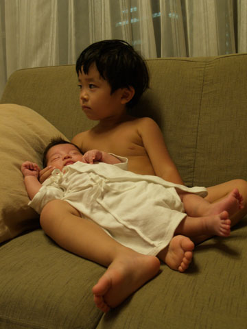 夜、太郎とお風呂に入ろうと思ったら次郎が泣いていたので