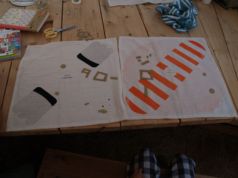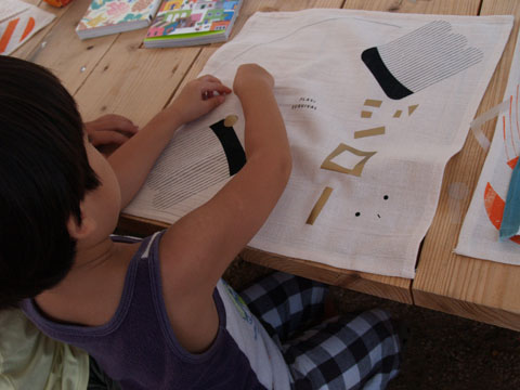 樋口くん指導のもとランチョンマット作成中。
