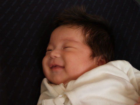 いつ出るか分からない新生児微笑を必死で撮る